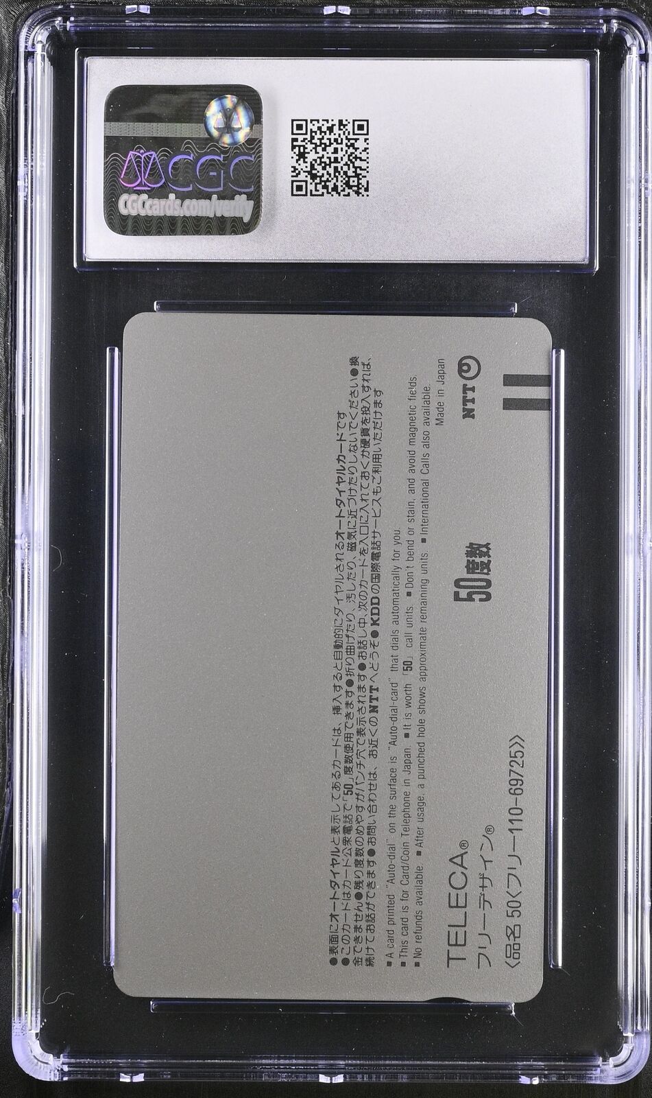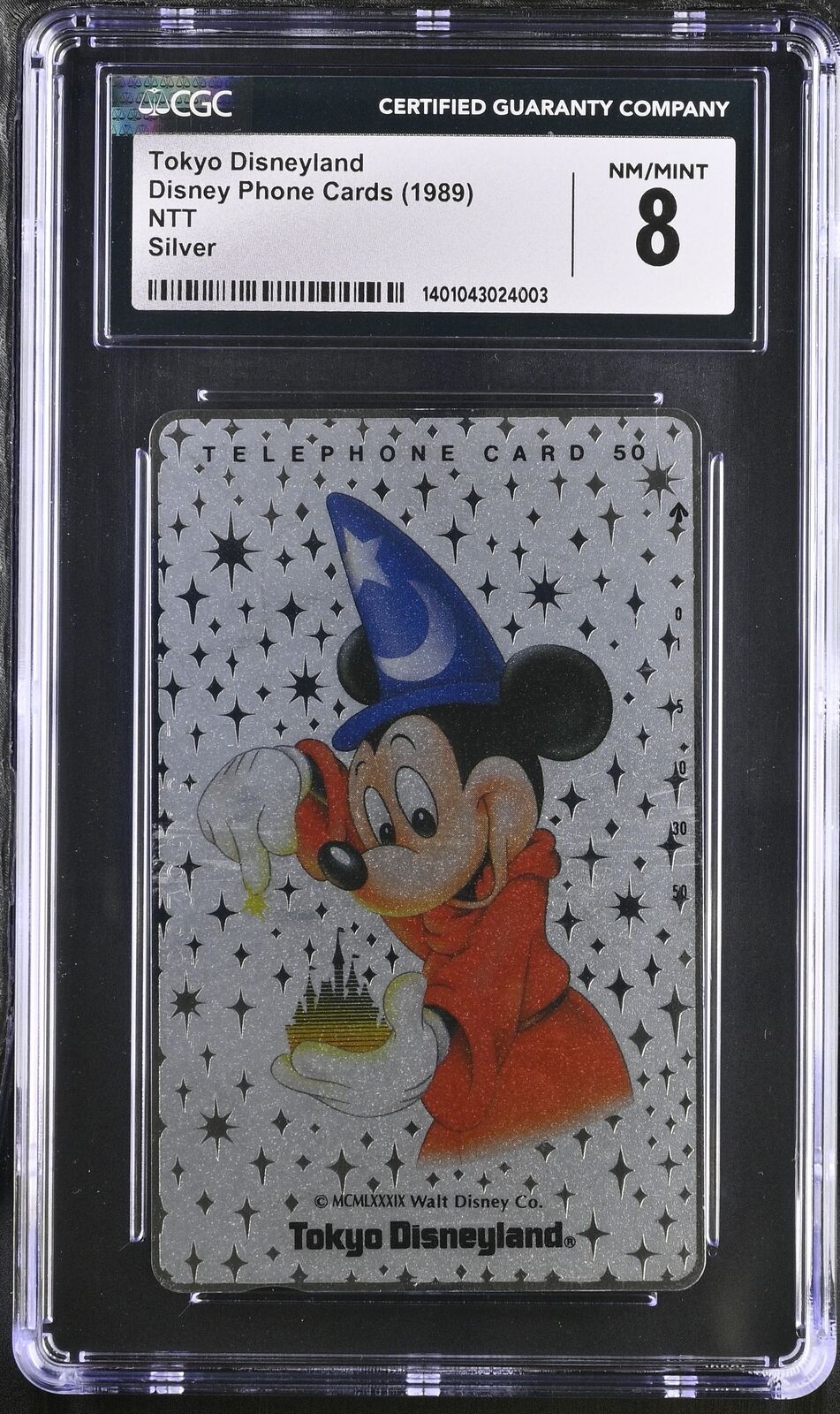 1989 Tokyo Disneyland (Mickey pointing down) Disney Phone Card Silver CGC 8 PSA
