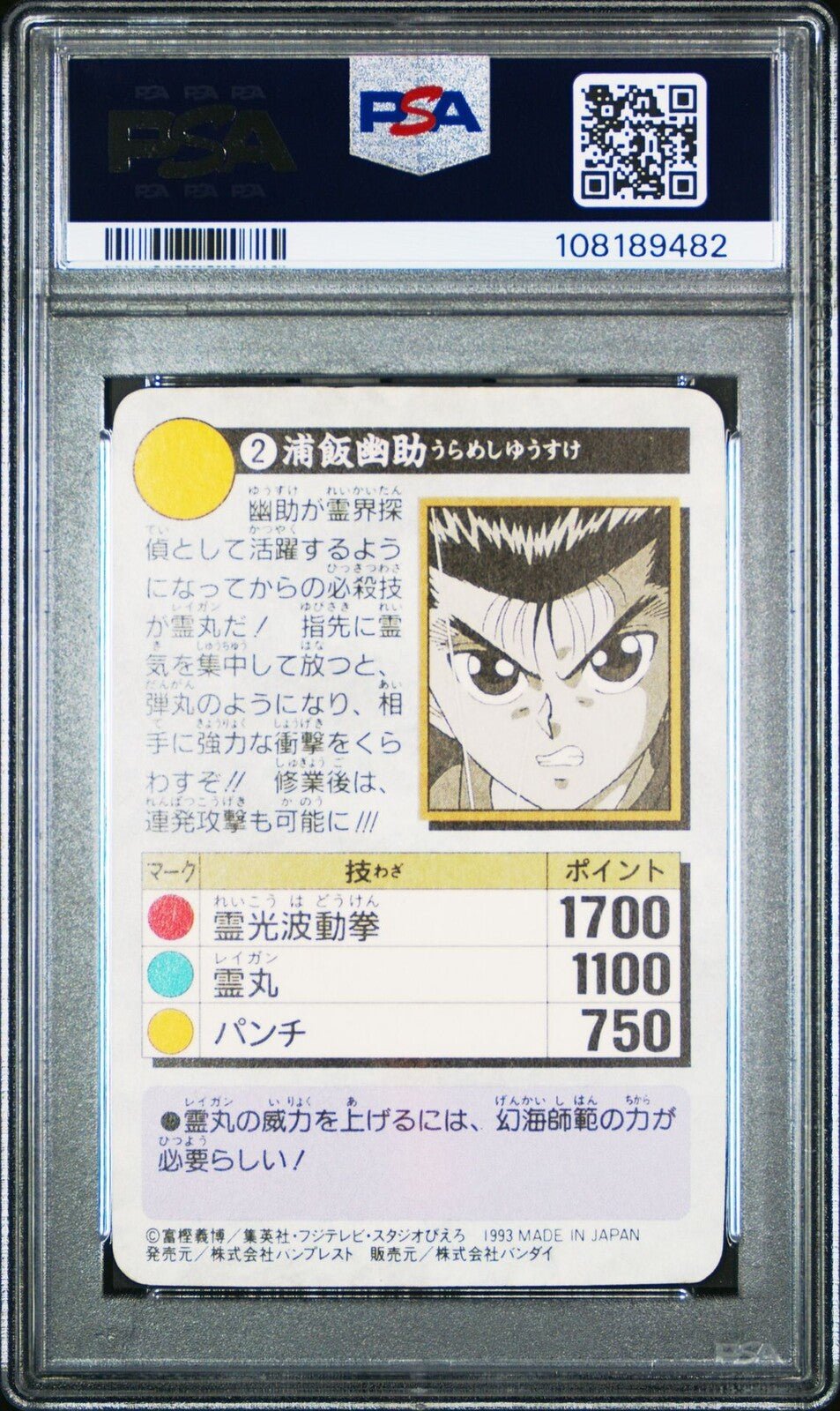 1993 YUYU HAKUSHO CARDDASS PART 1 #2 YUSUKE URAMESHI PSA 6