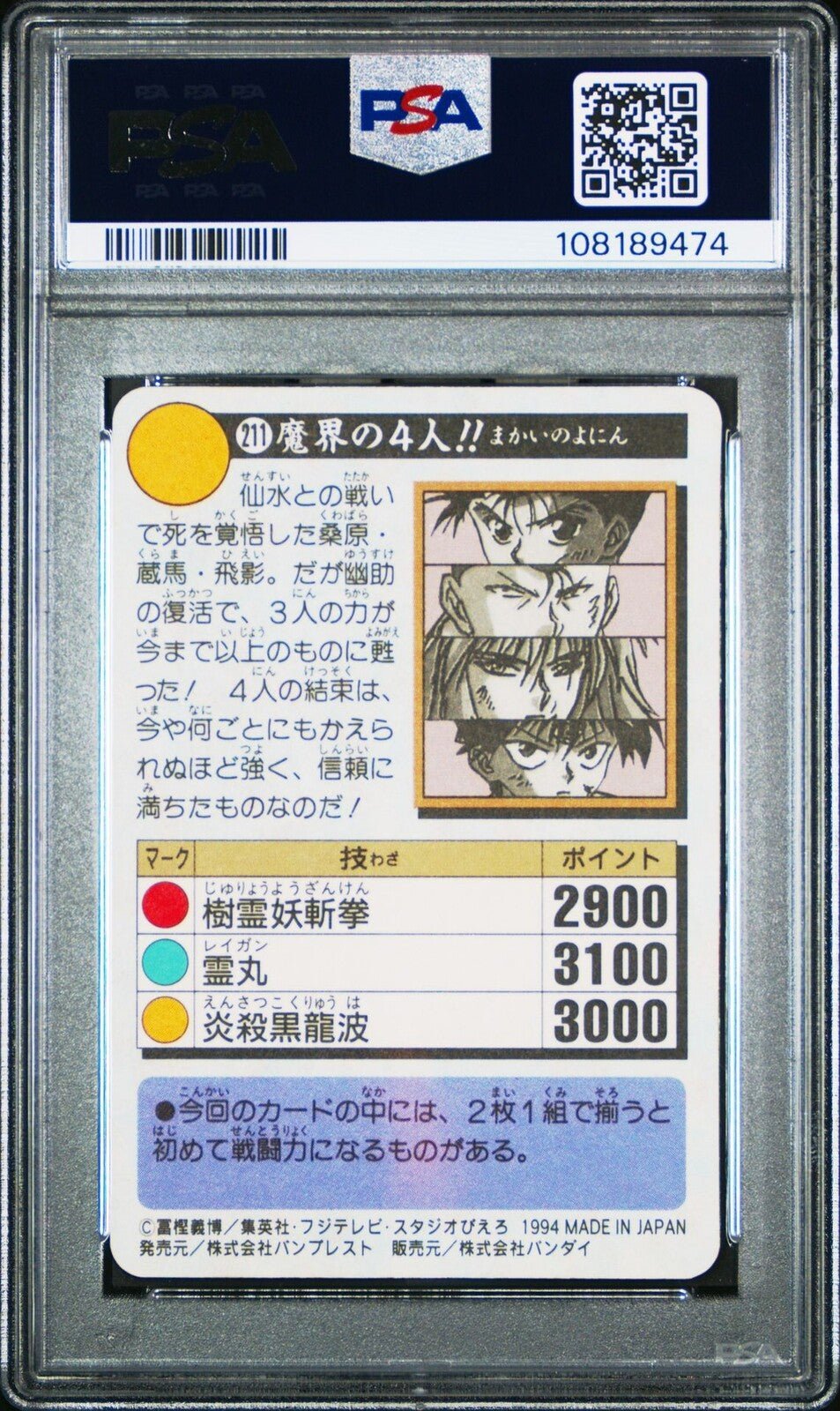 1994 YUYU HAKUSHO CARDDASS PART 6 #211 4 PEOPLE DEMON WORLD PSA 8