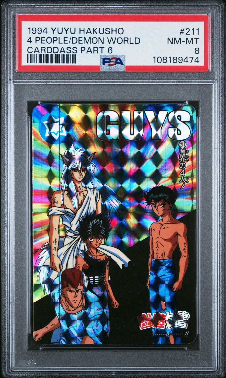 Step into the world of Yu Yu Hakusho with the coveted 1994 YUYU HAKUSHO CARDDASS PART 6 #211, featuring a striking illustration of four demon world characters. A must-have for collectors and fans alike, this card is a timeless piece of the TCG's rich history. Graded PSA 8, this card showcases a combination of vibrant colors and intricate artwork that captures the essence of the anime's thrilling adventures. Add a touch of nostalgia to your collection with this iconic piece from the Yu Yu Hakusho TCG.