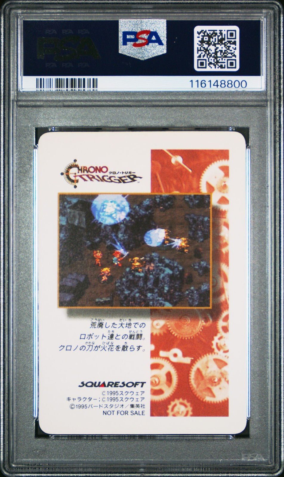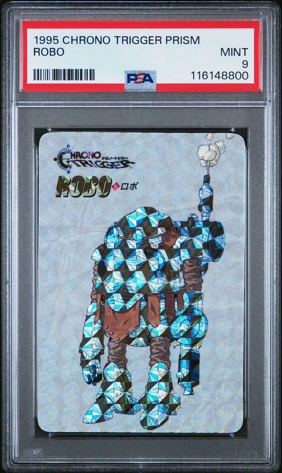 The product is a vintage Japanese Chrono Trigger CCG promo card featuring the character Robo. Manufactured in 1995 by Square Enix, this Prismatic Secret Rare card is part of the Chrono Trigger Special Prism Cards set and is a full art Holo card. The card is a rare collectible item with a digital variety pedigree, making it a sought-after piece for fans of the game and collectors of vintage trading cards.