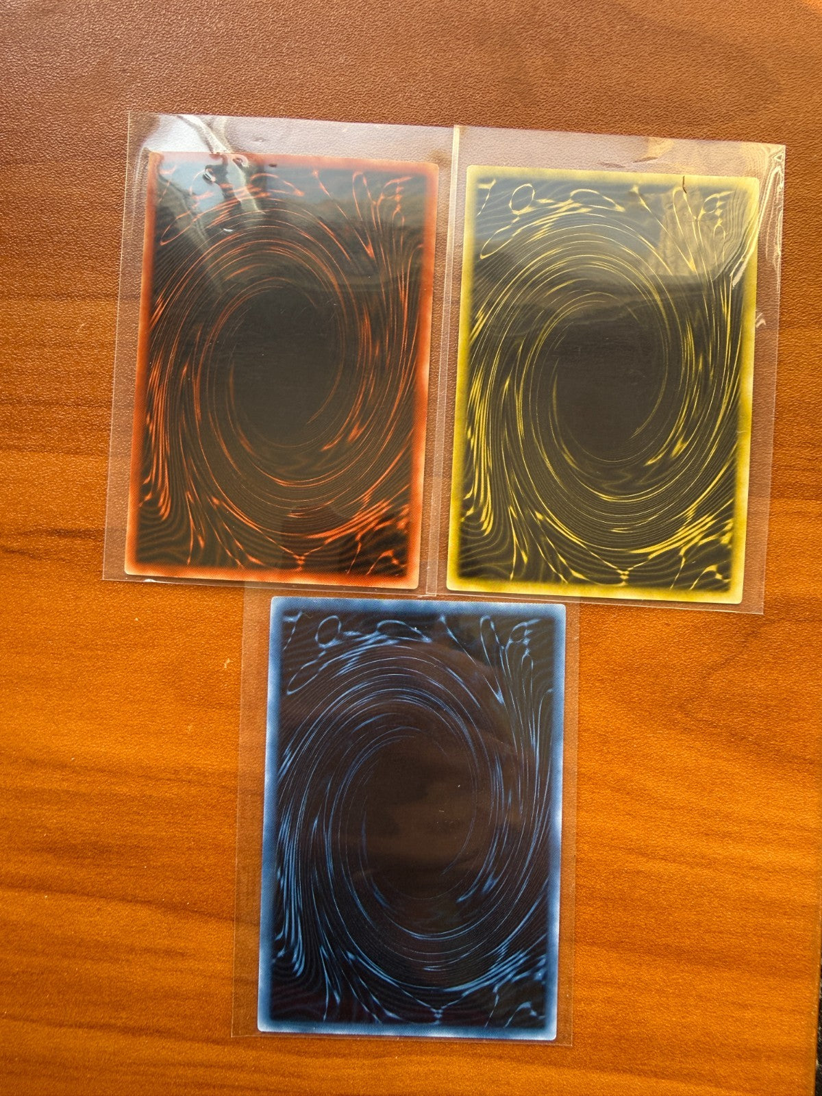 This product is a replica set of the Egyptian God cards from the Yu-Gi-Oh! TCG, specifically Slifer The Sky Dragon, Obelisk The Tormentor, and The Winged Dragon of Ra. These Japanese-sized cards are colorless, foil finished, and are from the "Yugi" set released in 2000. Manufactured by Konami in Japan, these secret rare promo cards are perfect for collectors and fans of the game looking to add unique and sought-after pieces to their collection. Each card features intricate designs and iconic characters from the game's lore, making them highly sought after among fans and collectors alike.